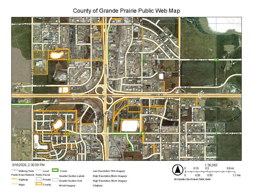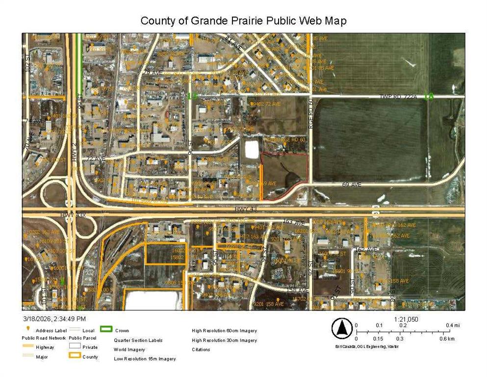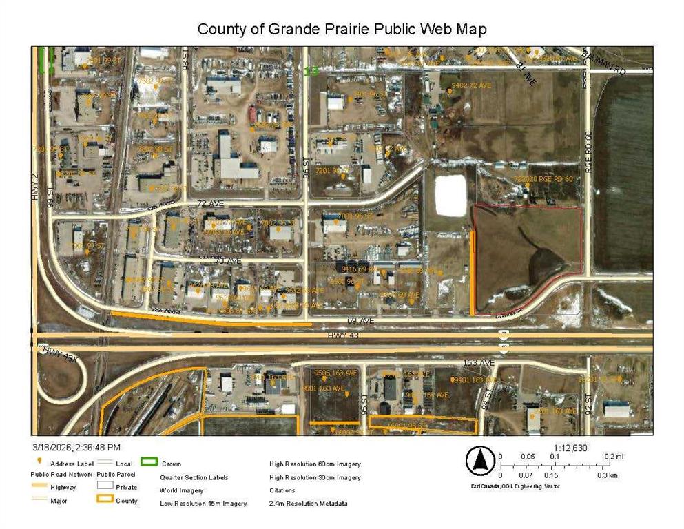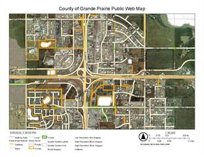 An opportunity to purchase 20.6+/- acres of commercial property in Crossroads North. This property is being rezoned as Rm-4 and is the most southeasterly portion of section 13 and is identified as commercial property in the area structure plan of Crossroads North. There are services to the property line including a curb stop on the property. The property has 69th Ave as a South boundary and Range Road 60 as a East boundary and is at the junction of alternate truck route access to Highway 43 North and East of Grande Prairie. The property slopes to the South and East and there is a berm on the South side that can be removed. The land has great access and is ready for the new owner to develop according to their needs. Don't miss this opportunity for a wonderful property in a busy area. The property is very visible from Highway 43. This property is priced to sell.