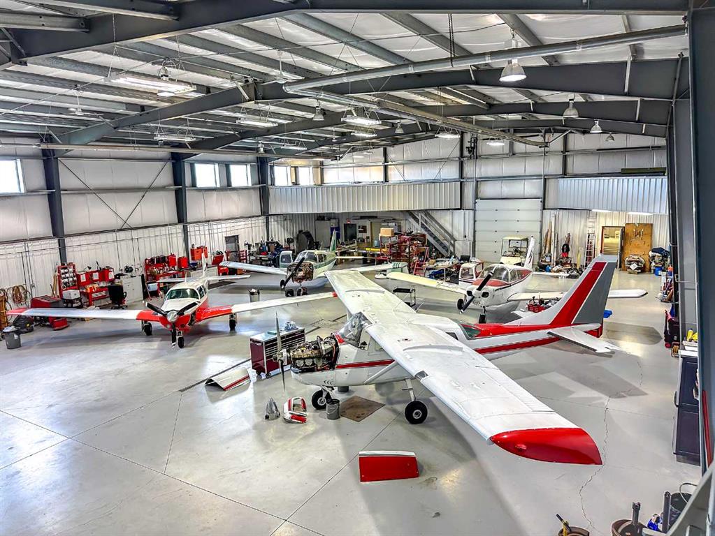 The premier hangar location at the Foothills Regional Airport (CEN4). Located beside the runway, main ramp, and fueling stations, this facility has a convenient taxiway access and is ideal for commercial or private aviation applications. The building is currently outfitted as an aircraft maintenance facility. The hangar is 70 x 100 ft., with a 65 ft. wide bi-fold door, opening to 18 ft. 9 in. The hanger has in-floor heating and radiant overhead heaters. There are two office areas, each 20 x 100 ft., with in-floor heating, forced air, and air-conditioning. The front of the building opens to the main ramp and fueling stations. At the rear of the building is approximately 9,000 sq. ft. of undeveloped land. The building could be expanded into this area to increase the hangar size, or a smaller hangar could be built. There is also an additional heated sea can addition and paint booth which can be negotiated as part of the sale. The Runway is 4,300 Ft. in length and is a registered aerodrome located 2.5 nautical miles (4.6 km) southeast of High River, Alberta.