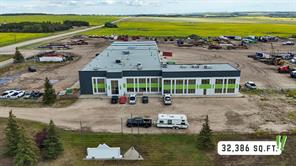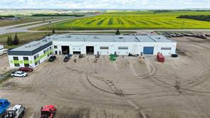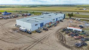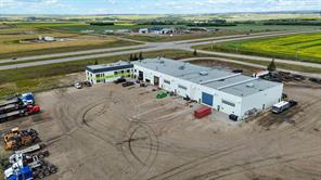 IMMEDIATE POSSESSION AVAILABLE! This impressive 32,386 SQ. FT. industrial building with a RECENTLY REFRESHED INTERIOR is situated on 20.14 ACRES with UNBEATABLE HIGHWAY VISIBILITY and just minutes from city limits. Designed for heavy equipment and ample storage, the site is fully fenced, landscaped, and features an expansive, gravelled yard with excellent drainage. Built from durable block and mortar, this facility is designed to last and to support seamless onsite business operations. Services include a private well and septic system. The shop is equipped with 2 OVERHEAD CRANES—one 5-ton and one 10-ton—and (5) x 90 FT. DRIVE-THRU BAYS, including 2 WASH BAYS WITH BUILT-IN HOTSY SYSTEMS. 8.5 BAYS in total, including service bays with mezzanine storage. Radiant heat and an engineered air make-up system provide consistent comfort throughout, with multiple oversized overhead doors: (4) 18x20, (2) 18x18, (6) 18x16, and (1) 14x12. With plenty of room for admin, the two-storey workspace provides over 20 OFFICES, most of them executive-sized and offering stunning southwest views. Key areas include a welcoming front reception, parts rooms, locker room with shower, multiple washrooms, a staff lunchroom, and a spacious boardroom with dry bar. Natural light fills the common areas, and one office connects directly to the shop for optimal workflow. This property is as practical as it is impressive! With abundant parking, storage, excellent visibility and ease of highway access, it offers everything needed for an efficient, large-scale operation. RECENT UPDATES create a fresh, brighter workspace throughout. The shop and wash bay offer new lighting and floor-to-ceiling professional paint, along with new radiant heaters and fire-rated interior doors. Additional updates include fresh paint in the offices and mechanical/locker room, vinyl plank flooring in the lunchroom/stairwell, and planned lot regrading and regravelling this spring. ALSO FOR LEASE (See MLS A2295702 - BASIC RENT =$18/SQ. FT. + ADDITIONAL RENT=$3.94/SQ.FT. (TRIPLE NET LEASE) - For more information or to arrange a private showing, contact your Commercial Realtor® today! Click on MULTIMEDIA for additional photos, video and more!
