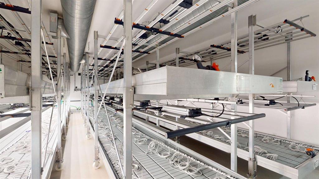 The previous Cannabis Cultivation Company spent upwards of 29M for the build out of this facility. The building was constructed in 2 phases, with a Phase 1 completion date in 2017 and a Phase 2 completion date in 2019. Collectively between the two phases, over 30 areas are used for production, processing, and packaging, which includes growing rooms, Vegetation rooms, drying rooms, clipping rooms, extraction rooms, and packaging rooms. The remaining areas of the facility include office space, warehouse space, shipping and receiving space, employee break areas, storage rooms, and mechanical rooms. Building can be used as is or converted back to a shell. Would be ideal for a vertical farming setup or a Data Centre. Extremely overbuilt, high end heating/cooling ventilation systems. Heavy power. Tied directly to Enmax, not into a substation. 15000 kVa available power.