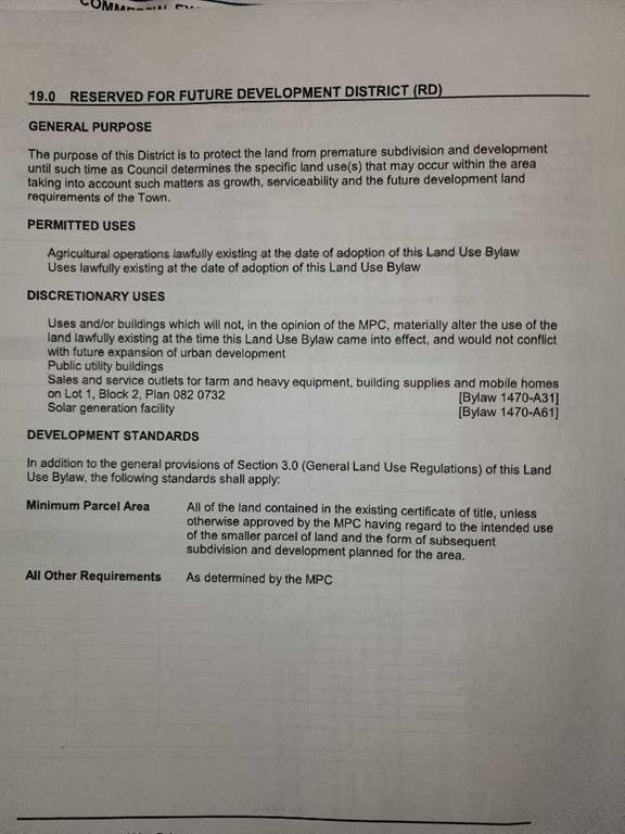 13.04 acres well position between Hwy 2A & QE2, just NE of Innisfail, Alberta. 584m of prime 2A frontage along the west boundary for access & maximum exposure. Property is contained within the Town of Innisfail Area Structure Plan. Property is located across from the Discovery Wildlife Park & Campground, Innisfail. Invest into Central Alberta's future commercial/ industrial needs. Town bylaw suggests that private water and septic could be possible .