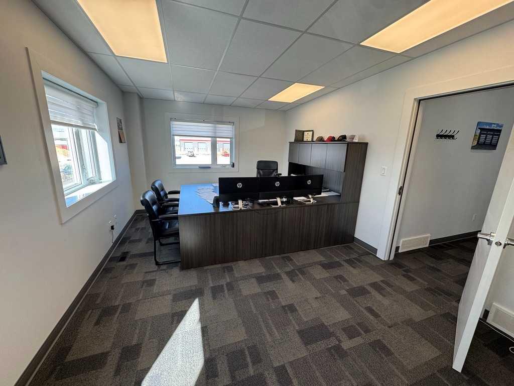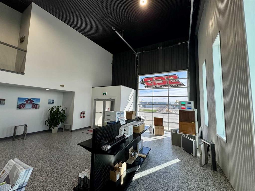 Conveniently located in Fort Macleod, this is a very modern building with a versatile layout that includes approximately 4300 sqft of Warehousing with loading dock and 2100 sqft for Office space and showroom. The Showroom & reception area have high ceilings and lot's of floor space for your customers. There is a large boardroom for meetings as well as a coffee station and guest washrooms. The staff lunchroom is just off of the warehouse which features radiant heat, Mezzanine storage and staff washrooms. Upstairs you get 4 additional offices with the option to add more if needed and more storage space. There are 2 x 16' x 14' bay doors as well as the 8' x 8' loading dock door. One more bay door in the front adds to the appeal and convenience of the building. Outside, the fenced yard has tons of space for inventory and materials as well as lot's of paved customer parking in the front. Bonus features like a security system and A/C make this an ideal choice for your business!