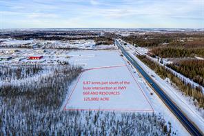 6.87 acres of Frontage along Resources Road ZONED RM2 INDUSTRIAL @125k /ACRE! .Well-suited for industrial, oilfield, and forestry service companies operating across Northern Alberta. Fronting Secondary Highway 668 and approximately two miles from Highway 40, the property provides efficient access to the Montney Formation and Alberta Deep Basin, including the active Kakwa, Gold Creek, and Karr areas.. Positioned within South Grande Prairie’s established and rapidly growing industrial corridor, this location offers long-term value and strong demand fundamentals. Parcels can be subdivided to suit, with an estimated 60-day timeline to title. For buyers requiring immediate development, additional parcels are available to the west, including 4.02 acres, 4.95 acres, and 8.8 acres, several of which are already fenced and partially gravelled and ready for construction, priced at $225,000 per acre. Looking for fully serviced frontage? We have 16 acres to the north, fully servivced ready to subdivide to fit your needs competitly priced @260k/ acre.
